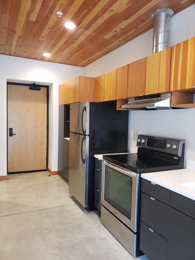 Spacious loft-like studio apartment with concrete floors & wood ceilings. Designed and built to be highly efficient. The Belmont is well-insulated from exterior conditions and large windows provide residents with tons of natural light for a healthy and enjoyable living experience!