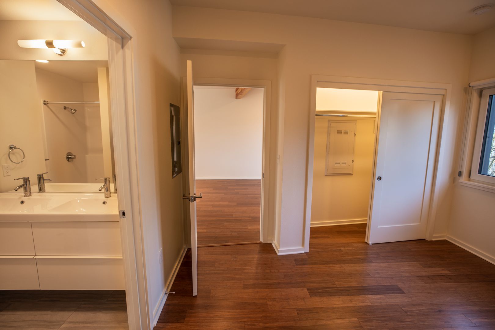 Once inside, residents will find that Tillamook Row cares about interior design as much as energy efficiency. An open floor layout is recognized in the kitchen, dining, and living room, with large windows on each end. Floors engineered wood throughout. Cabinets and countertops are high quality and highly durable.